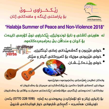 Wadis Partnerorganisation in Halabja – NWE Organization for Protecting Environment and Women’s Rights – startet ihre Kampagne „Halabja Summer of Peace and Non-Violence 2018“. In diesem Jahr werden folgende Kurse angeboten: