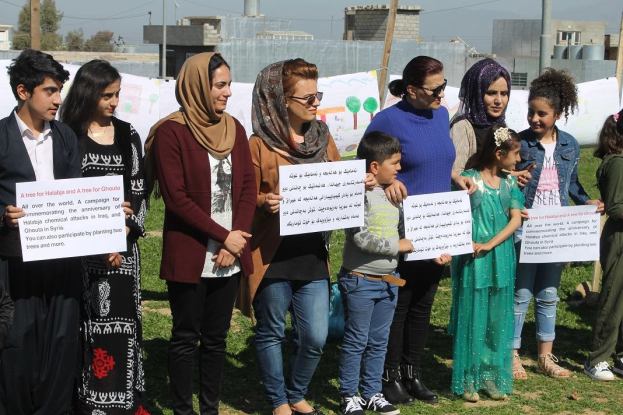 Bäume zu pflanzen und öffentliche Parks zu schaffen ist wahrscheinlich die sichtbarste Art und Weise, um Menschen davon zu überzeugen, dass ihre Umwelt einen direkten Einfluss auf ihre Zufriedenheit hat. Im März 2018 hat NWE einen Park in Erinnerung an die Opfer der Chemiewaffenangriffe in Halabja und in Ghouta (Syrien) angelegt. Unter dem Motto „Pflanzen für den Frieden“ wurde bei der Gedenkfeier dazu aufgerufen, „einen Baum für Halabja und einen Baum für Ghouta“ zu pflanzen. Die Absicht war dabei nicht, ein quälendes Denkmal zu errichten, sondern einen lebendigen Ort, an dem die Menschen sich aufhalten und reflektieren können. Das Pflanzen von Bäumen symbolisiert dabei das Leben, die Hoffnung und die Bekenntnis zu Frieden als Reaktion auf Gewalt. Dieser Park ist das erste Stück Land, das sowohl für die Menschen als auch von den Menschen ist. Ein solches Projekt zeigt die Macht von Eigeninitiative und Selbstorganisation und hat einen großen Einfluss auf das Verständnis der Menschen von gemeinschaftlicher Organisation und lokaler Demokratie. Die Stadtverwaltung hat der Weiterführung dieses Projektes bereits seine Unterstützung ausgesprochen.
