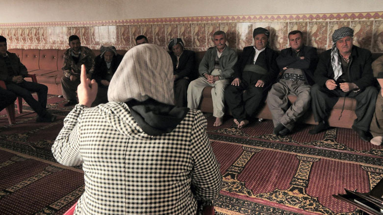 A WADI field worker talks about the dangers of FGM to local officials in a rural area of the Kurdistan Region. (Photo: The National/Florian Neuhof)
