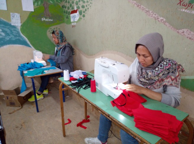 Published on 26/04/2020 in Wadis Arbeit in der Corona-KriseFull resolution (4208 × 3120) Next > Bei der Wadi Partnerorganisation Stand by me Lesvos nahe des Moria-Camps in Griechenland werden wiederverwendbare Stoffmasken genäht