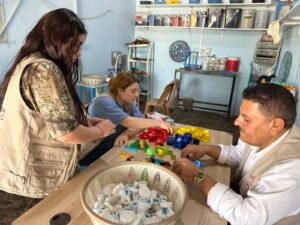 Nach dieser ersten aktiven Spielstunde versammelt das Team die Kinder zu ruhigeren, kreativen Aktivitäten wie Malen, Färben oder Perlenarbeiten. Bei diesen spielerischen Tätigkeiten haben die Kinder die Möglichkeit, ihrer Kreativität freien Lauf zu lassen. Dies ist auch eine Gelegenheit für die Teammitglieder, mit den Kindern über wichtige Themen zu sprechen. Dabei kann es sich um aktuelle Ereignisse, Missstände vor Ort, Gesundheitsprobleme oder auch umwelt- und sozialpolitische Fragen handeln. Auch erfahren unsere Teams so, ob unter Umständen Kinder Misshandlungen oder Vernachlässigungen zu Hause ausgesetzt sind und können dann, wenn nötig, intervenieren. Die Sozialarbeiterinnen schaffen einen geschützten Raum, um solche relevanten Themen auf altersgerechte Weise anzusprechen und den Kindern zu helfen, die Welt um sie herum zu verstehen und zu verarbeiten. Anschließend wird der Aufenthalt mit einer weiteren sportlichen Aktivität abgeschlossen, um die Kinder gestärkt und frisch in den Tag zu entlassen.