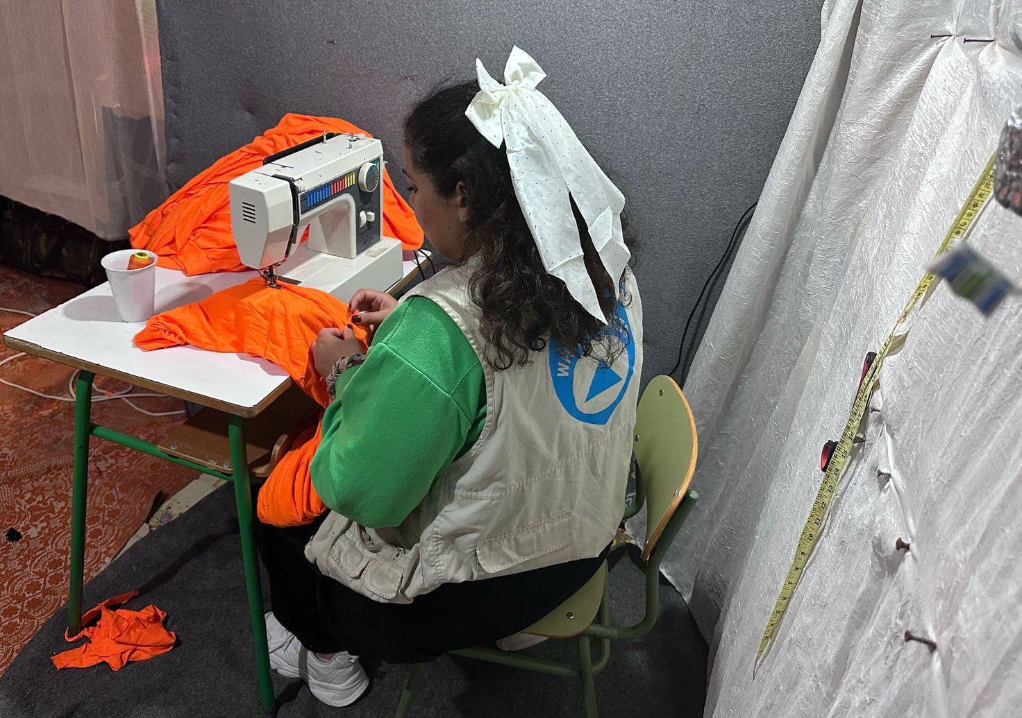Eine Schneiderei, in der erfahrene Schneiderinnen Kleidung und Textilien reparieren und anpassen. Das Team besteht aus Frauen und Männern, die vier Tage pro Woche arbeiten.